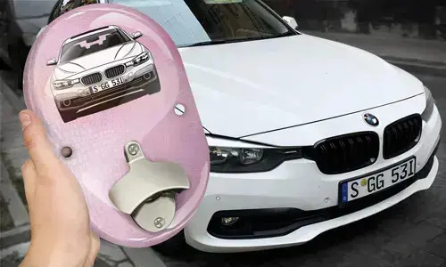 Stylový otvírák na pivo (na stěnu) je ozdoben modelem vašeho vozu. V naší databázi máme téměř nekonečné množství modelů automobilů. Můžete si také vybrat barvu vozu, jeho registrační značku a atraktivní design pozadí.