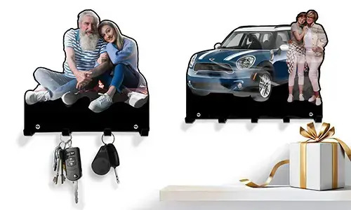 Váš personalizovaný stěnový držák na klíče je k dispozici na vyžádání s fotografií vašeho auta, siluetou vašeho modelu auta nebo jiným fotografiem. Vyberte si z našich šablon aut nebo jednoduše nahrajte svou oblíbenou fotografii.