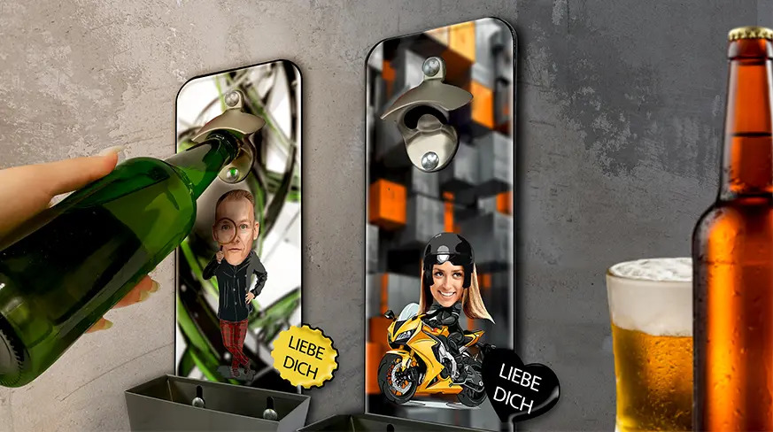 Create your personalized wall-mounted bottle opener with drip tray now – the perfect highlight for your home bar! ... Refresh preview ... Personalized wall bottle opener with cap catcher comic hobby profession Wall-mounted bottle opener with custom text and design (profession/hobby) – made just for you Our professional designers will create a unique rectangular personalized wall-mounted bottle opener with drip tray, featuring a character design (hobby/profession) and your own text that perfectly reflects your hobby or profession. Just upload your photo – and we’ll turn it into something truly special We deliver quickly Your personalized wall-mounted bottle opener with drip tray will be shipped within 3 business days after receiving your order Unique gifts with themes from profession or hobby A custom-designed product is the perfect gift for your colleague or a hobby enthusiast. Choose your design — and we’ll turn it into something that truly fits you or the person receiving the gift. High-quality and practical decoration for the garage or home, specially made for you CREATE WALL BOTTLE OPENER HERE Get your personalized wall-mounted bottle opener with drip tray now – the ideal gift for any profession or hobby! Custom-made Perfect as a gift Practical use Fast delivery Made in Germany falsefalse More products from Auto4Style Feedback from our customers 0.0 0.0 out of 5 stars (based on 0 reviews) Excellent0%Very good0%Average0%Poor0%Terrible0% Show more ratings Write a new Review