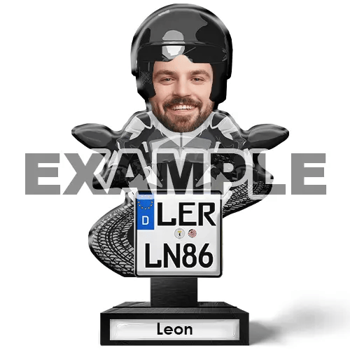 Pide ya tus geniales adornos personalizados para moto con tu cara y matrícula favoritas.