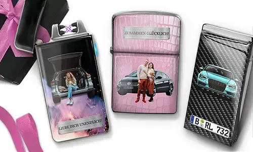 Bei uns kannst du dir dein eigenes Feuerzeug personalisieren. Wähle dein Fahrzeugmodell aus unserem Online-Baukasten aus und dein Lieblingsmodell samt Kennzeichen und begleitet dich als Motiv tagtäglich auf deinem Feuerzeug!