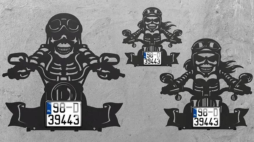 Wybierz wieszak na klucze z motocyklistą-szkieletem i spersonalizuj go własnym tekstem lub tablicą rejestracyjną! Idealne połączenie fajnej dekoracji ściennej i praktycznego dodatku dla prawdziwych motocyklistów