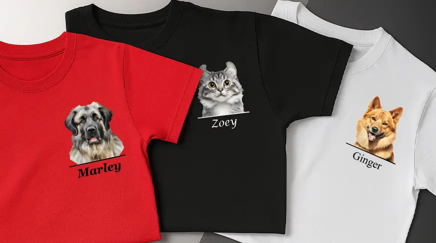Gestalte jetzt dein personalisiertes T-Shirt mit deinem Hund oder deiner Katze – das perfekte Geschenk für Tierliebhaber!